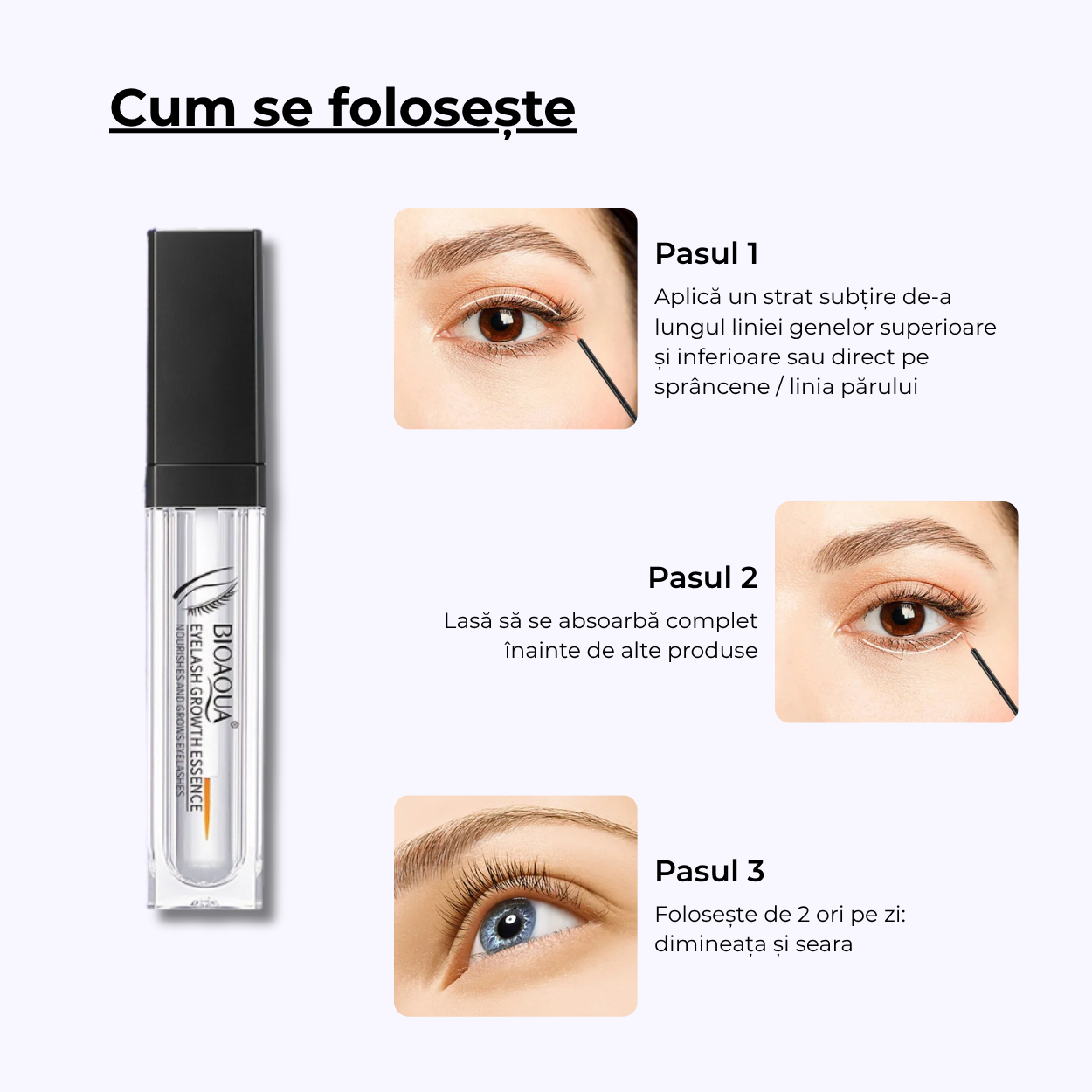 Rezultatul? Gene și sprâncene care arată mai pline, se simt mai catifelate și devin mai rezistente, săptămână după săptămână.